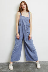 Greet the next Lovely Morning looking like a picture of comfort in this adorable classic Dusty Blue Jumpsuit! It's the best of both worlds when you can look this modern and playful all at once! This jumpsuit features a square neckline, adjustable button straps, a functional pockets at the waist, pintuck waist and a wide leg pant style.
