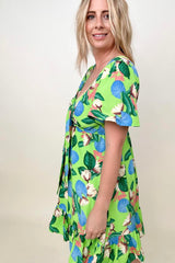 Capture vacation vibes all year round with the Tropical Print Flutter Sleeve Mini Dress! This vibrant, lightweight dress will have you feeling like a summer goddess, thanks to the beautiful tropical print, airy flutter sleeves, and flattering mini length. V Neckline with front self tie
