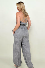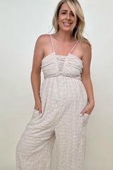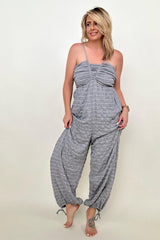 The ultra-chic Gracey Jumpsuit features bold white stripes on a smooth gray or taupe fabric, ensuring you'll turn heads wherever you go! An effortless look with an effortlessly cool vibe. An added bonus is the pockets. Shine on!