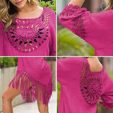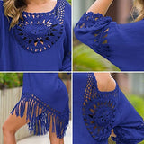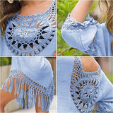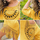 A Lightweight Cover Up With A Unique Crochet Design & Fringe Tassel.  Elbow Length Sleeve.