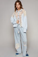 Experience the perfect blend of uniqueness and fun with the Catch A Breeze Contrast Jacket. This one-of-a-kind jacket features silver star stud detailing, cream mesh panels, and trendy balloon sleeves. Get ready to catch everyone's attention (and the breeze) with this stylish piece.