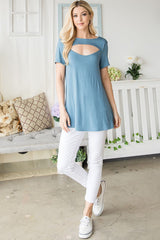 Super Comfortable Fabrication of 95% Rayon & 5% Spandex.  A Flattering Relaxed Silhouette.  Fits True To Size.