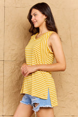 Talk To Me Striped Sleeveless V-Neck Top