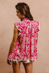 Embrace your bold, feminine side with the Uniquely You Ruffle Sleeve Top. Featuring a vibrant pink paisley print, this lightweight, breathable top keeps you comfortable all day. Its relaxed fit is sure to add to your favorites collection